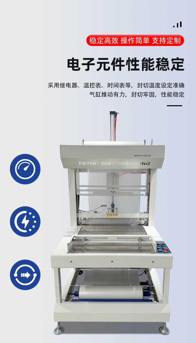 批量生產對設備的連續運行能力要求極高,袖口式熱收縮包裝機通過三大設計確保穩定性:其一,采用重型鋼結構機身,搭配精密軸承與耐磨輸送帶,長期運行后機身無明顯晃動,輸送帶磨損率降低 60%,使用壽命可達 3-5 年;其二,搭載進口 PLC 控制系統與伺服電機,核心部件故障率低于 0.3%,可支持 24 小時連續作業,即使在食品飲料行業 “旺季日產 10 萬瓶” 的高強度生產場景下,也能保持穩定運行;其三,配備完善的保護機制 —— 當加熱管溫度異常、包裝膜斷膜、輸送帶卡瓶時,設備會自動切斷電源或暫停運行,并在觸控屏上顯示故障原因,操作人員可快速排查維修,平均停機維修時間控制在 15 分鐘以內,大幅減少因設備故障導致的產能損失。